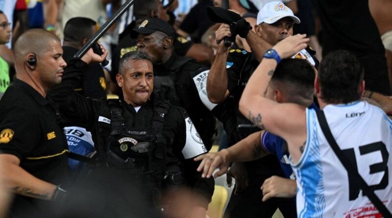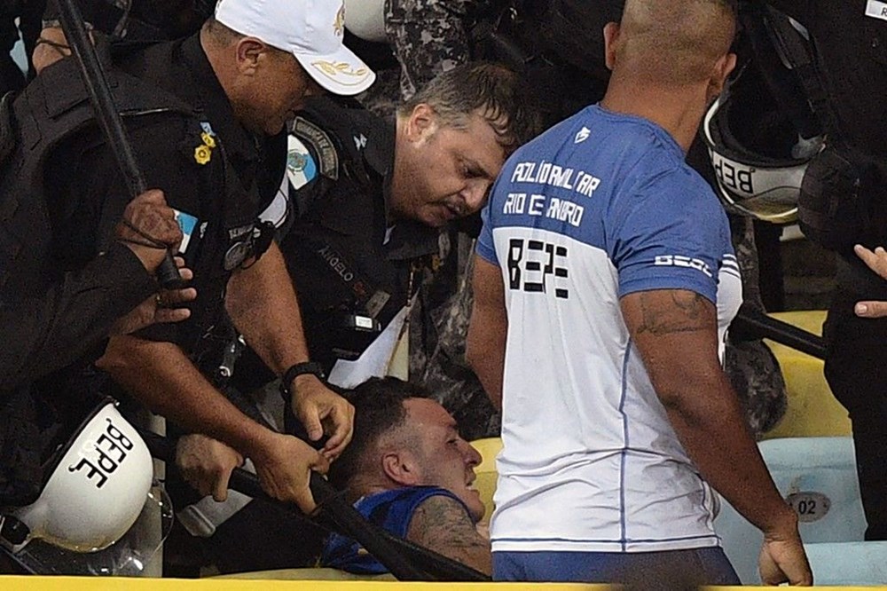 Brezilya polisi, Arjantin taraftarlarına copla müdahalede bulundu.